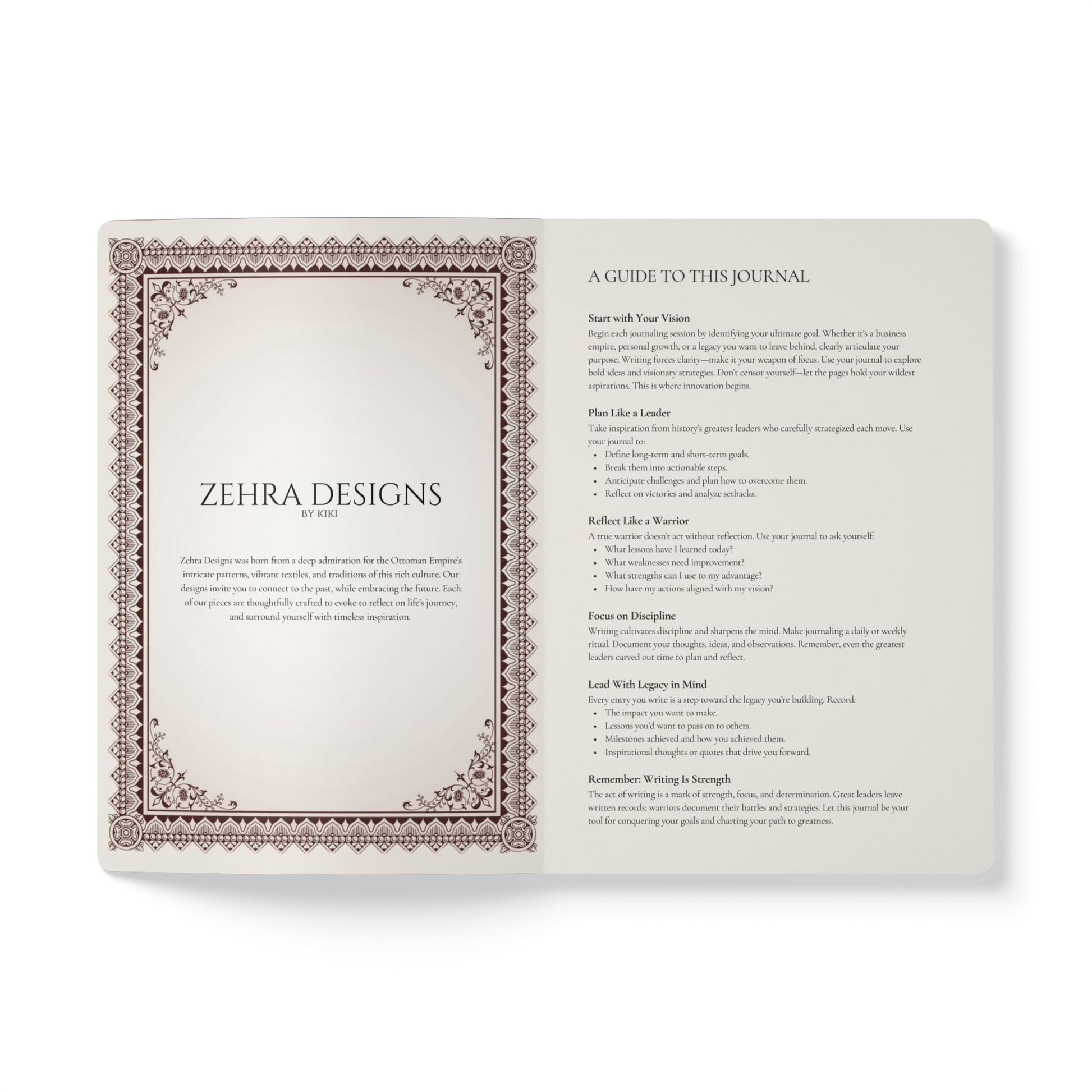 Step into the mindset of warriors, sultans, and visionary leaders with the Legacy Journal. Designed for ambitious people who aspire to lead with purpose and leave a lasting impact, this journal is your ultimate tool for mapping ideas, setting goals, and reflecting on your journey.